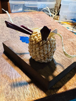 伝統的な郷土玩具や民芸品はなかなかハードルが高い気がするという声が多い中で、すこしでも多くの方に麦わら大森細工の魅力が伝わるもの、そして、手にしてもらい大切にしてもらえるものをと試行錯誤を繰り返す毎日。今まで、できるだけリアルに作り上げることに力を入れてきましたが、大森細工のキーワード「菱形」と「丸み」を最大限に生かし、シンプルな中に厳選した”らしさ”を備えることで、大森細工ならではの魅力の詰まった作品に仕上がったと思っております。